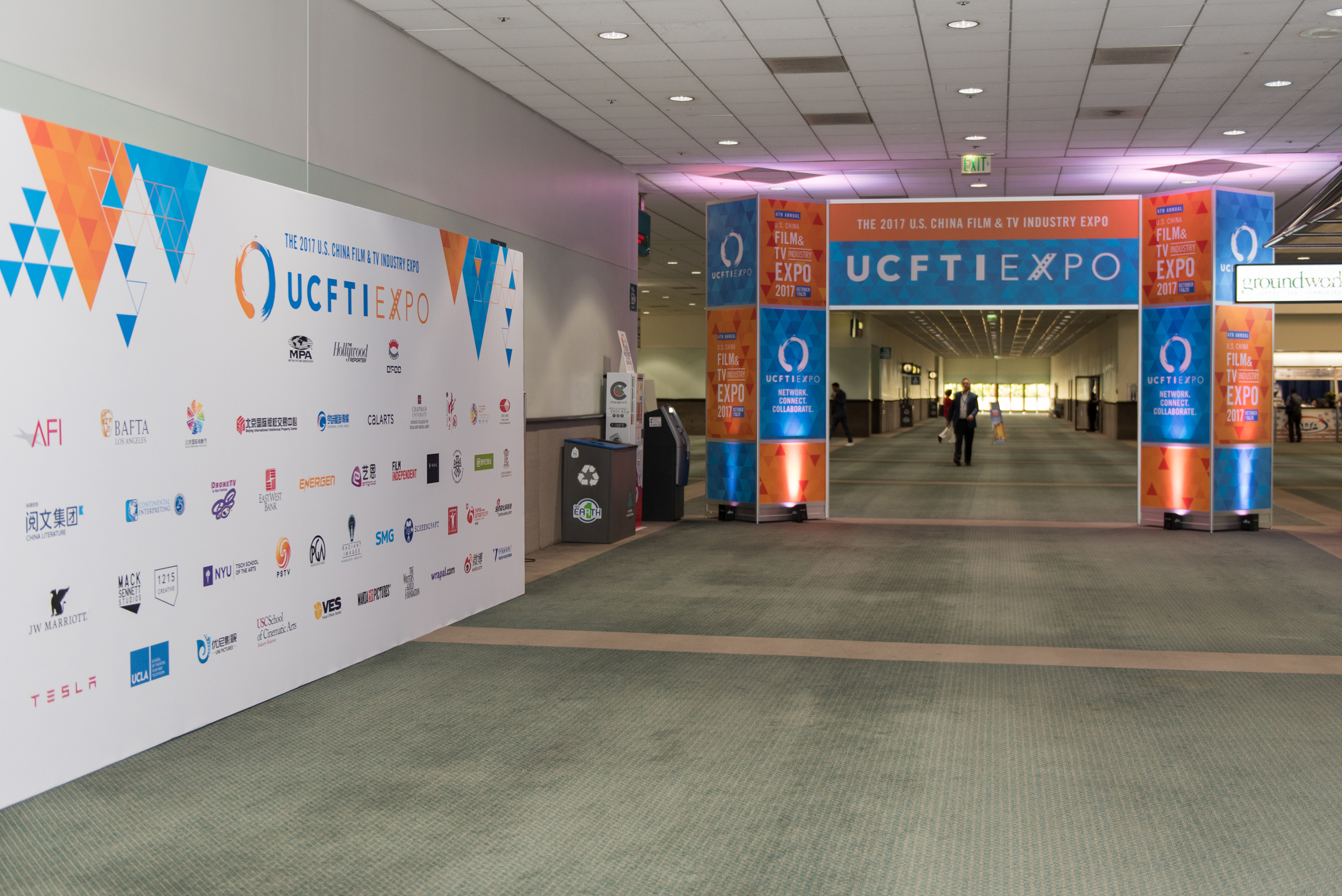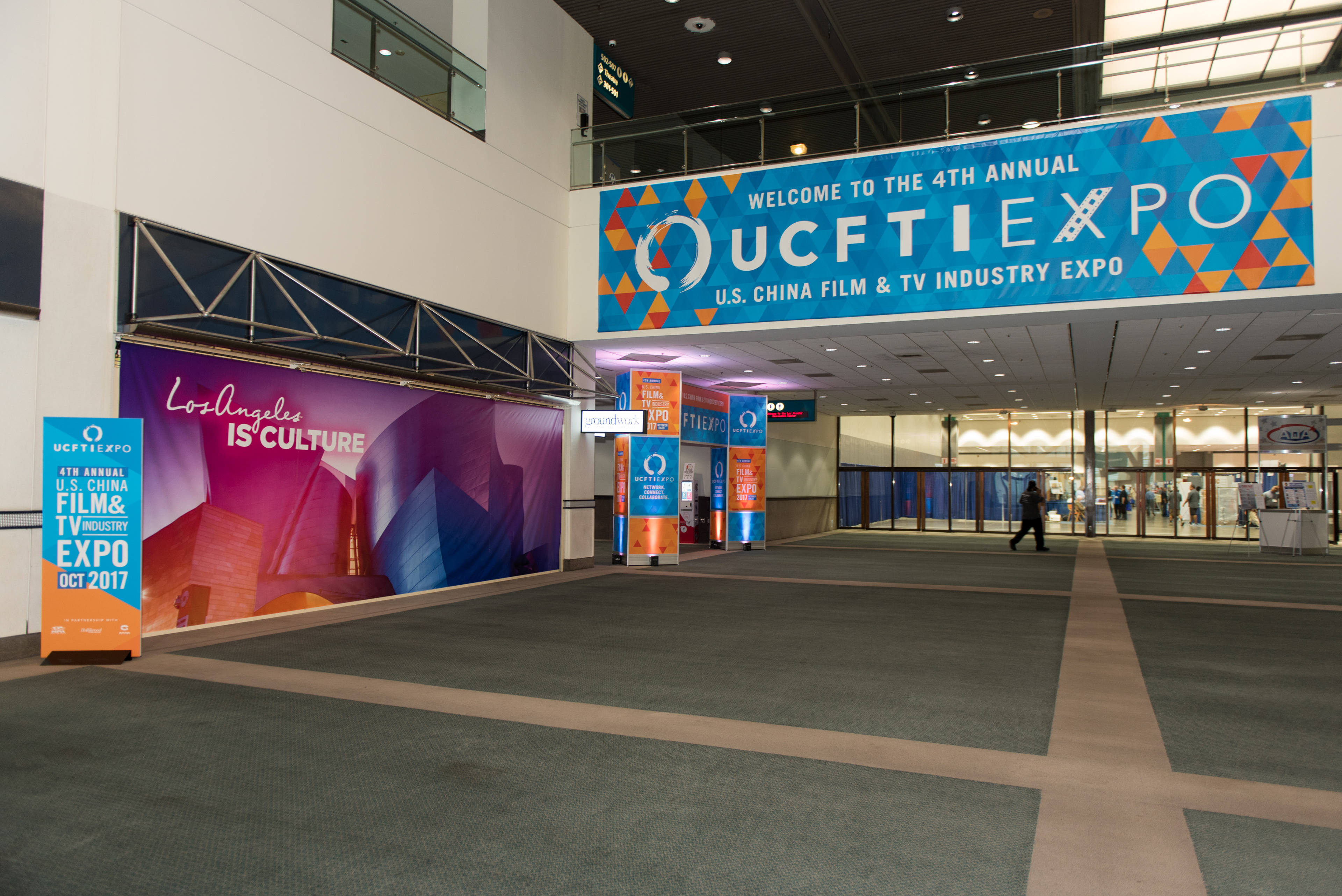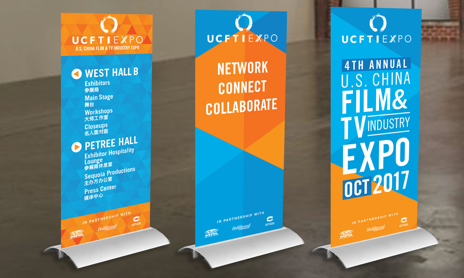 Designed for the LA Convention Center, the UCFTI Expo elements were created to bring energy to the event with impactful and informative graphics. Elements included floor-based and hanging signage, a step & repeat, stage graphics, and a program book.