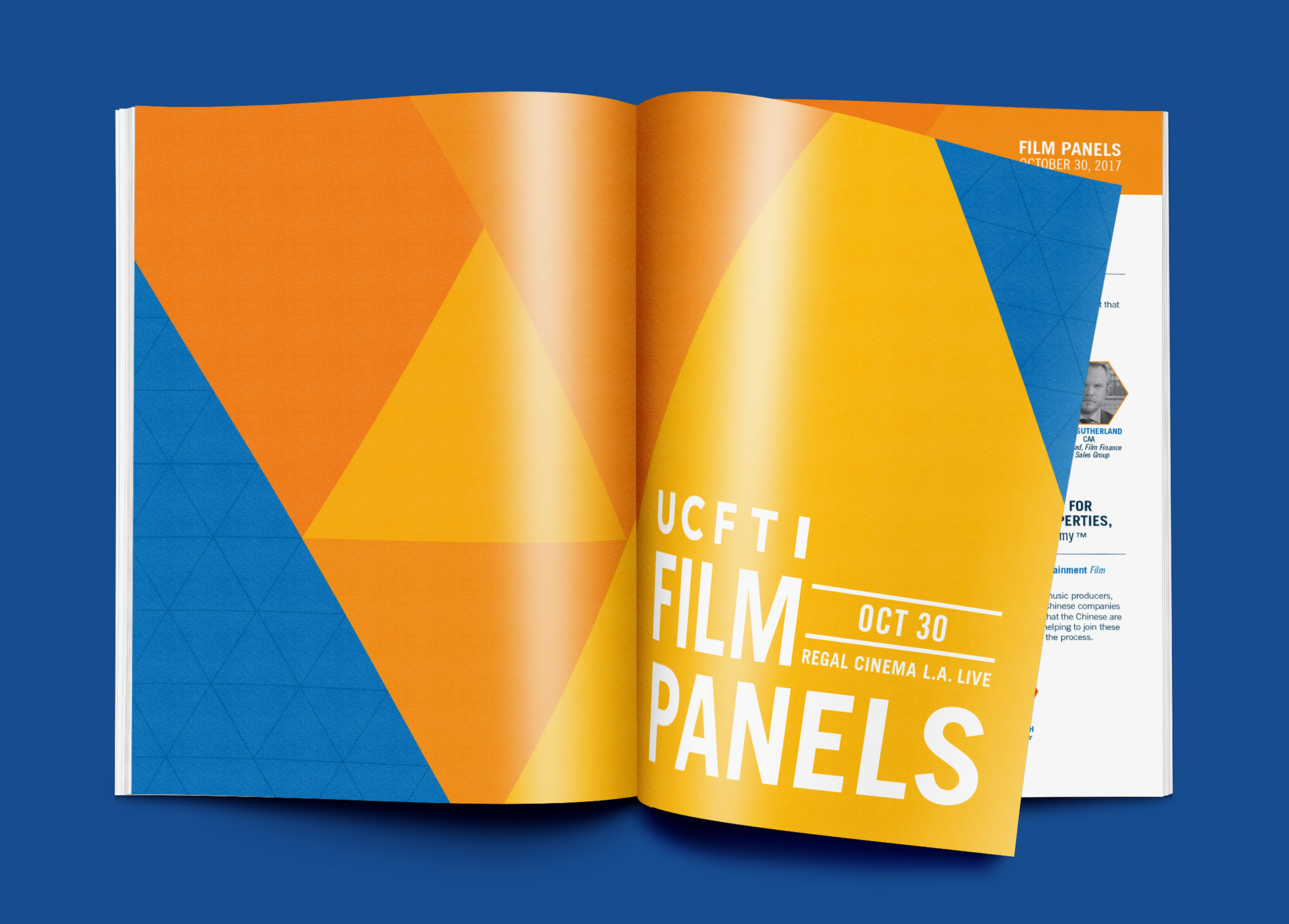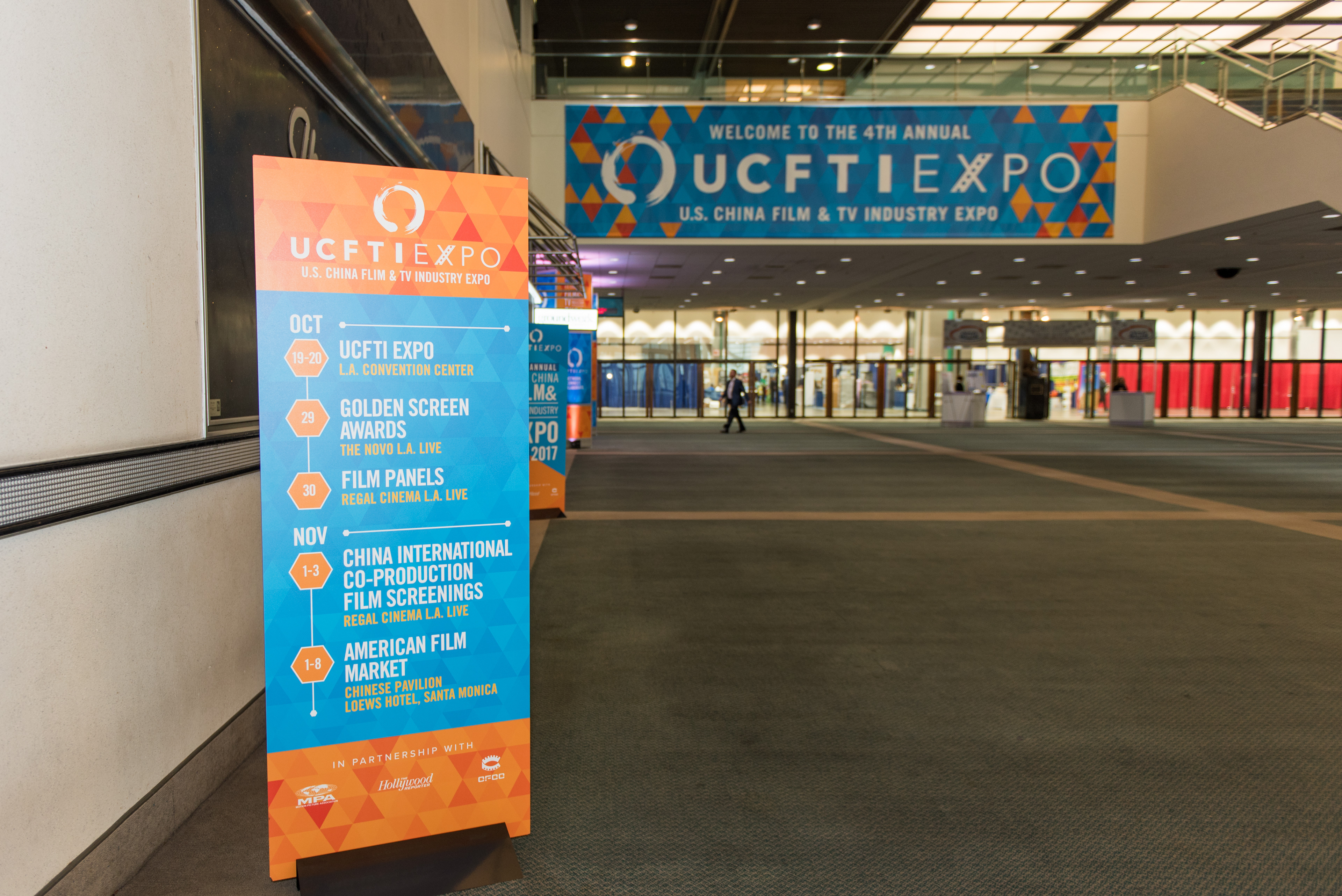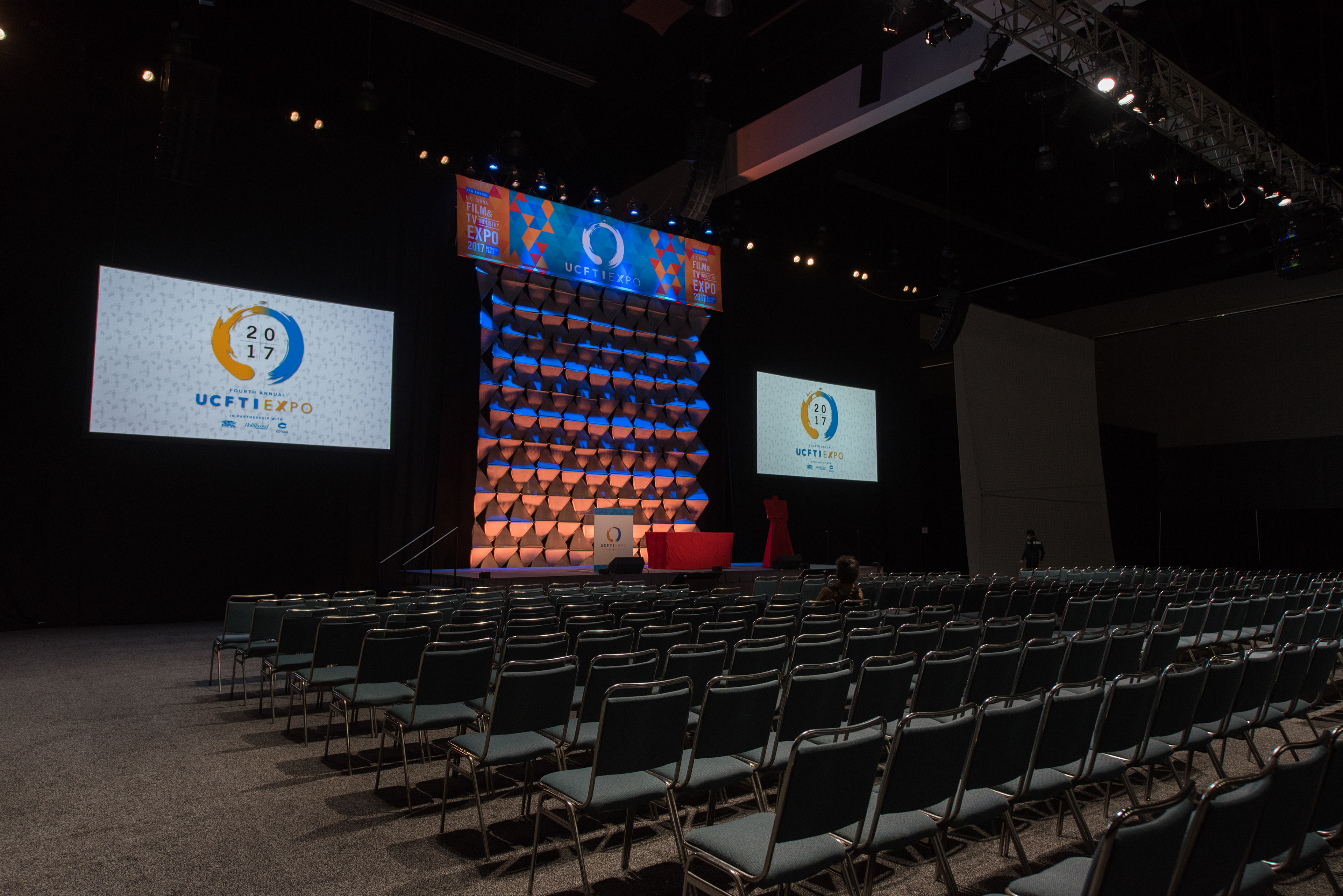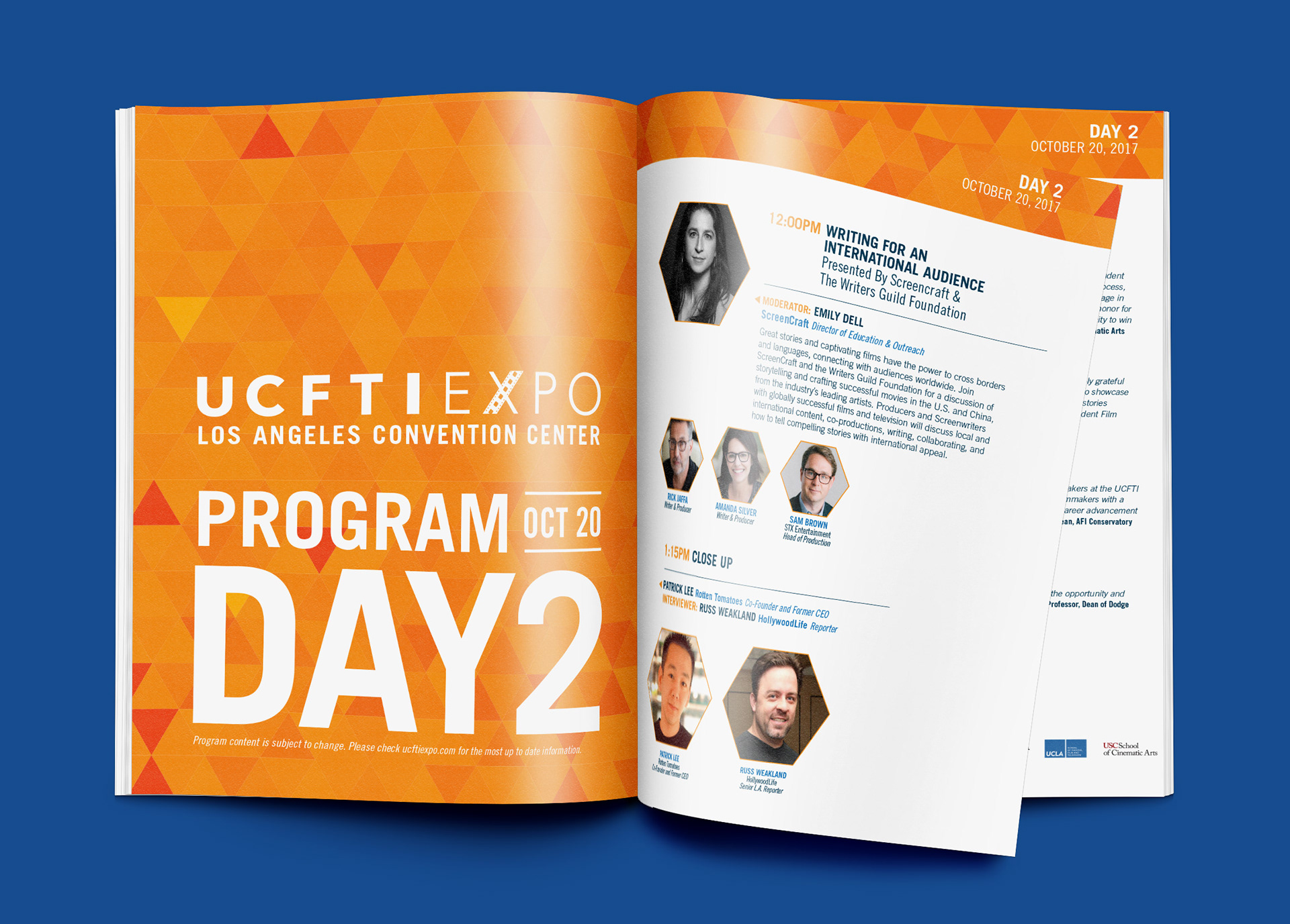 Designed for the LA Convention Center, the UCFTI Expo elements were created to bring energy to the event with impactful and informative graphics. Elements included floor-based and hanging signage, a step & repeat, stage graphics, and a program book.