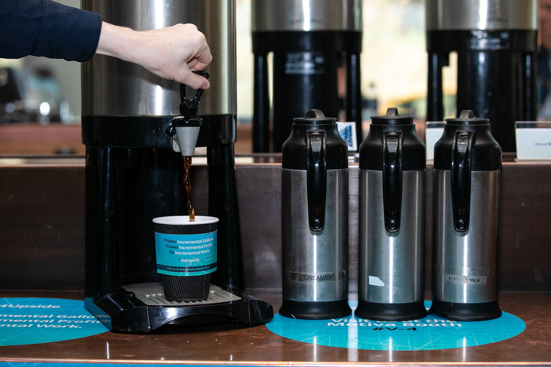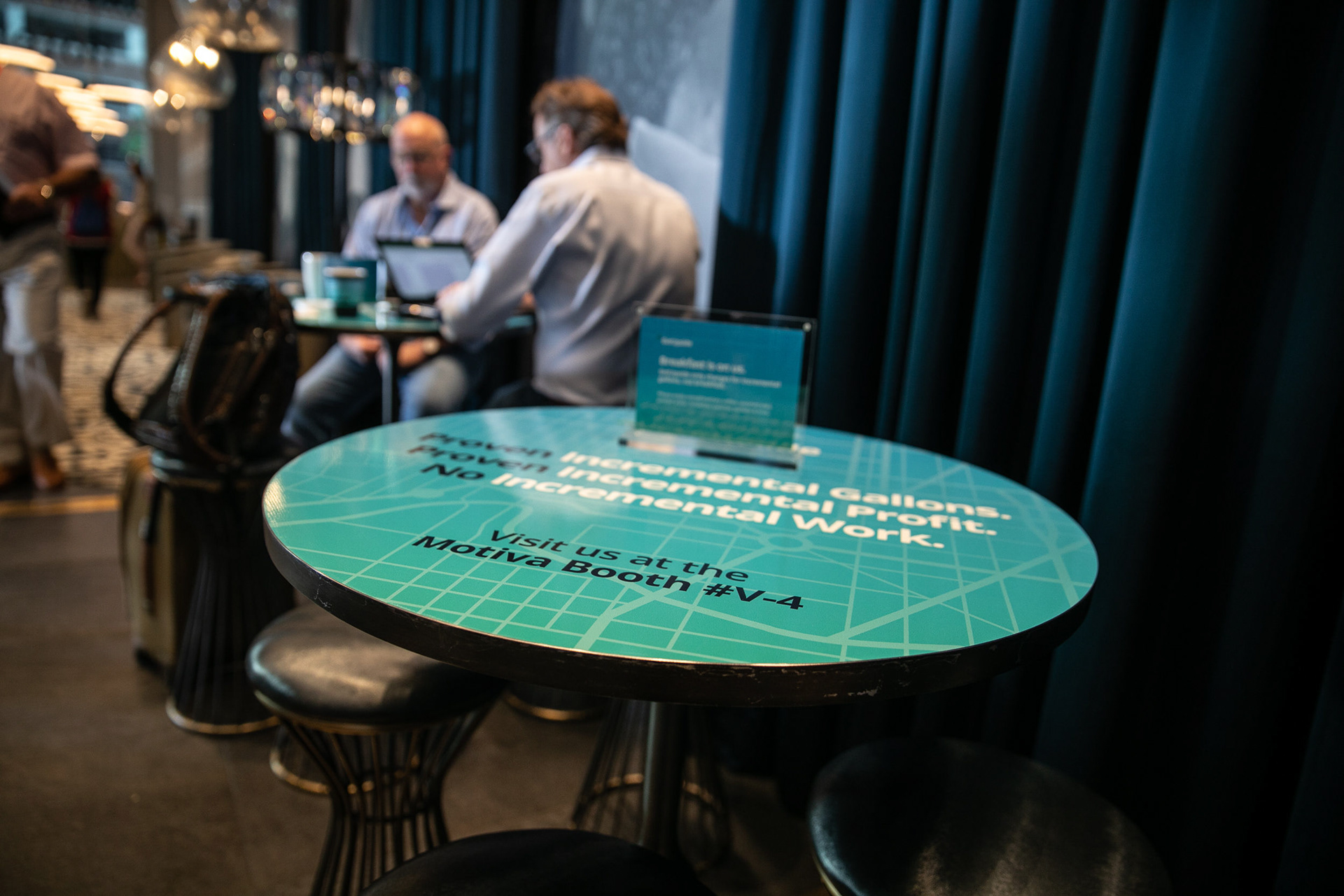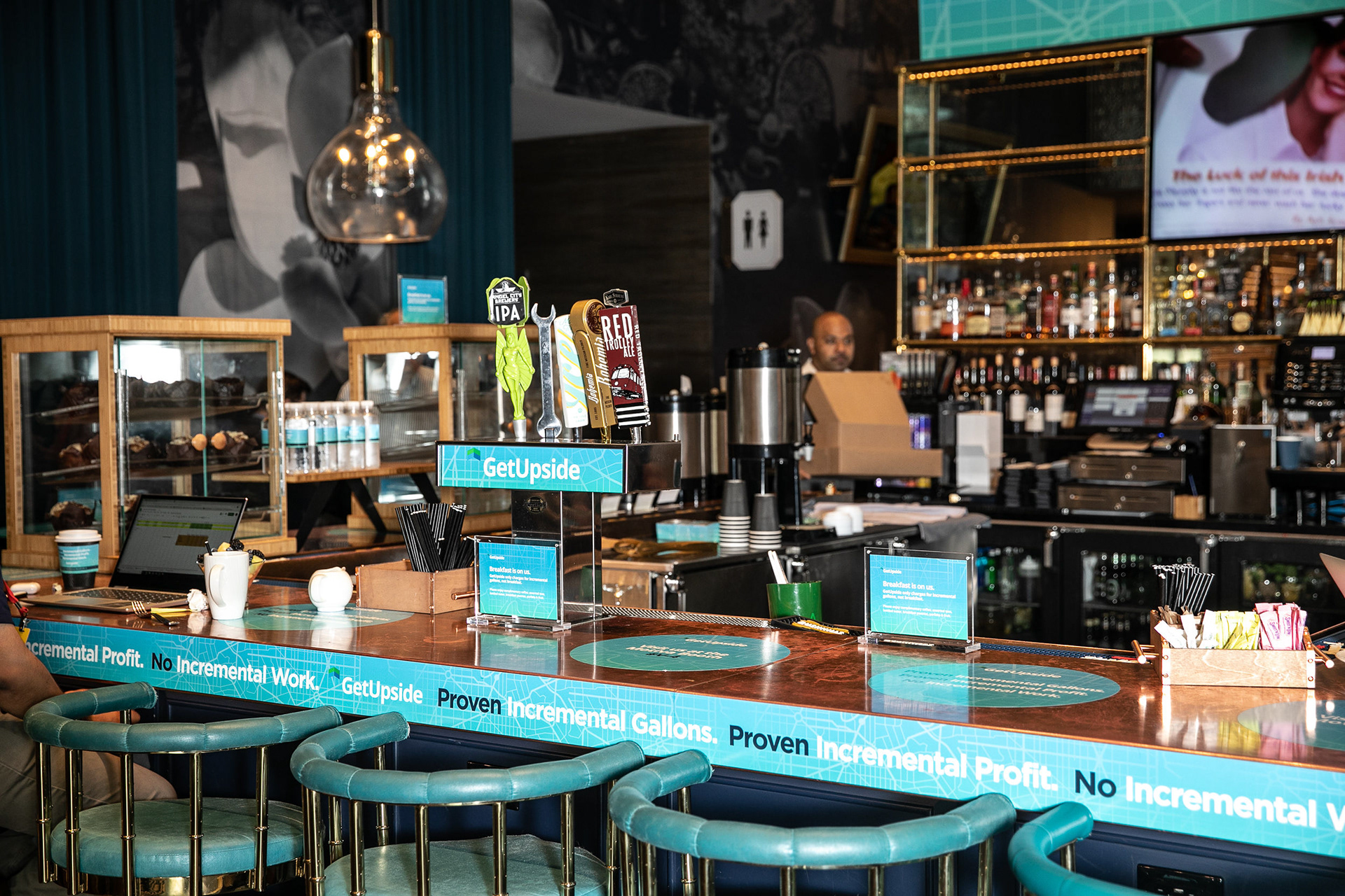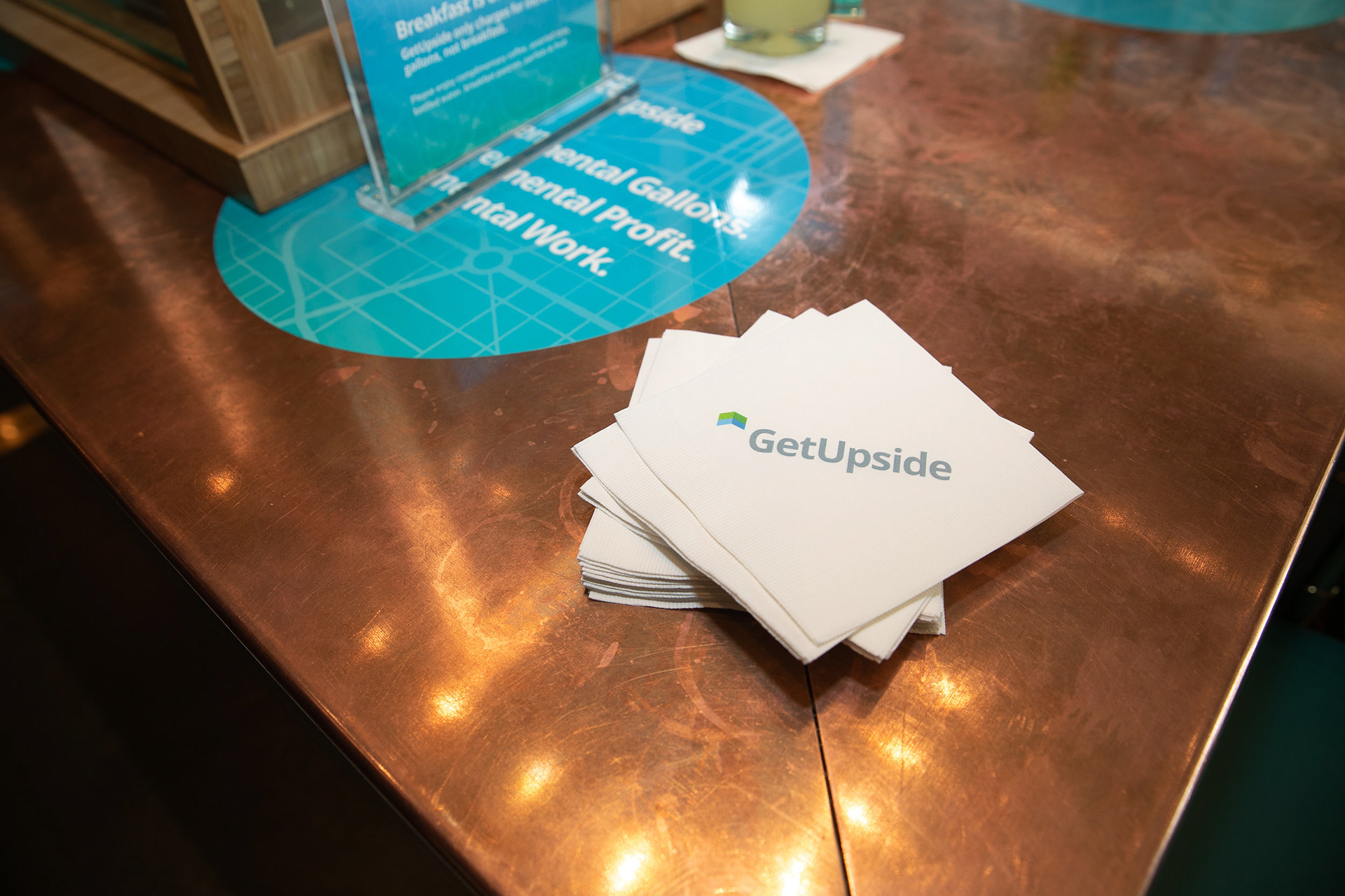 GetUpside wanted to raise brand awareness to guests visiting town for a fuel convention at the LA Convention Center. A nearby hotel lobby was transformed into a brand activation with graphics adorning the bar, cocktail tables and surrounding spaces. A fleet of SUVs were wrapped with custom graphics and used to transport attendees to the convention.