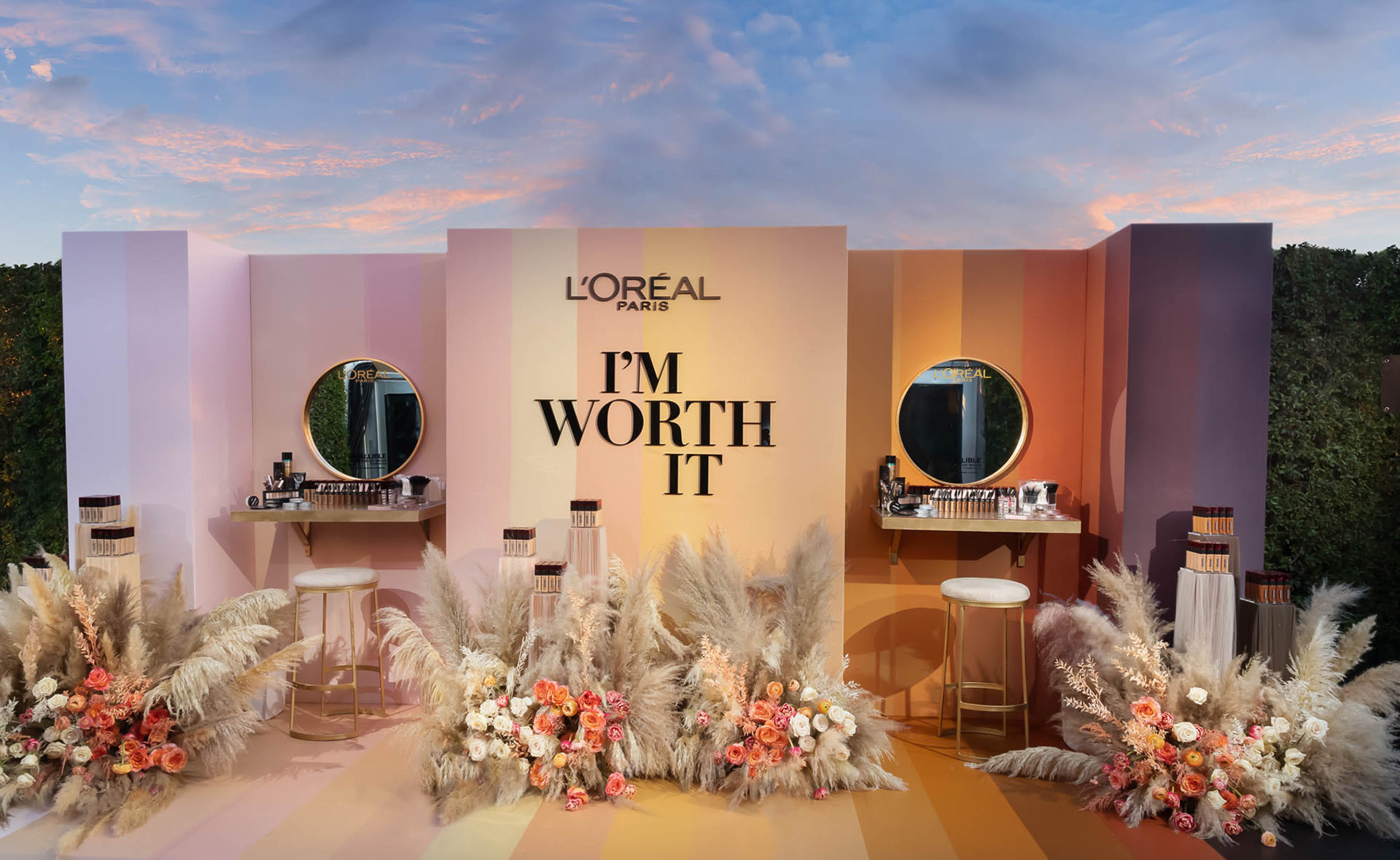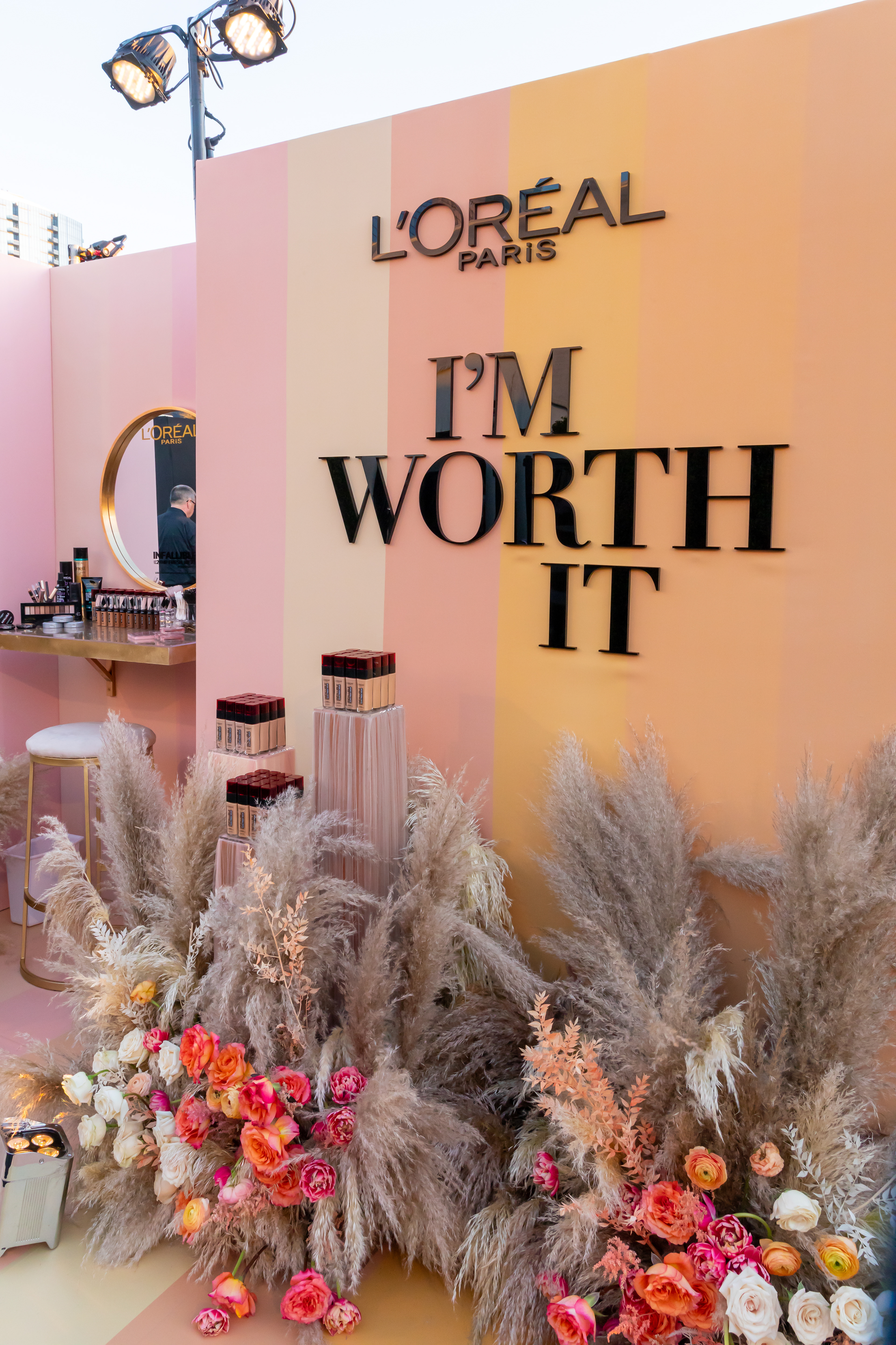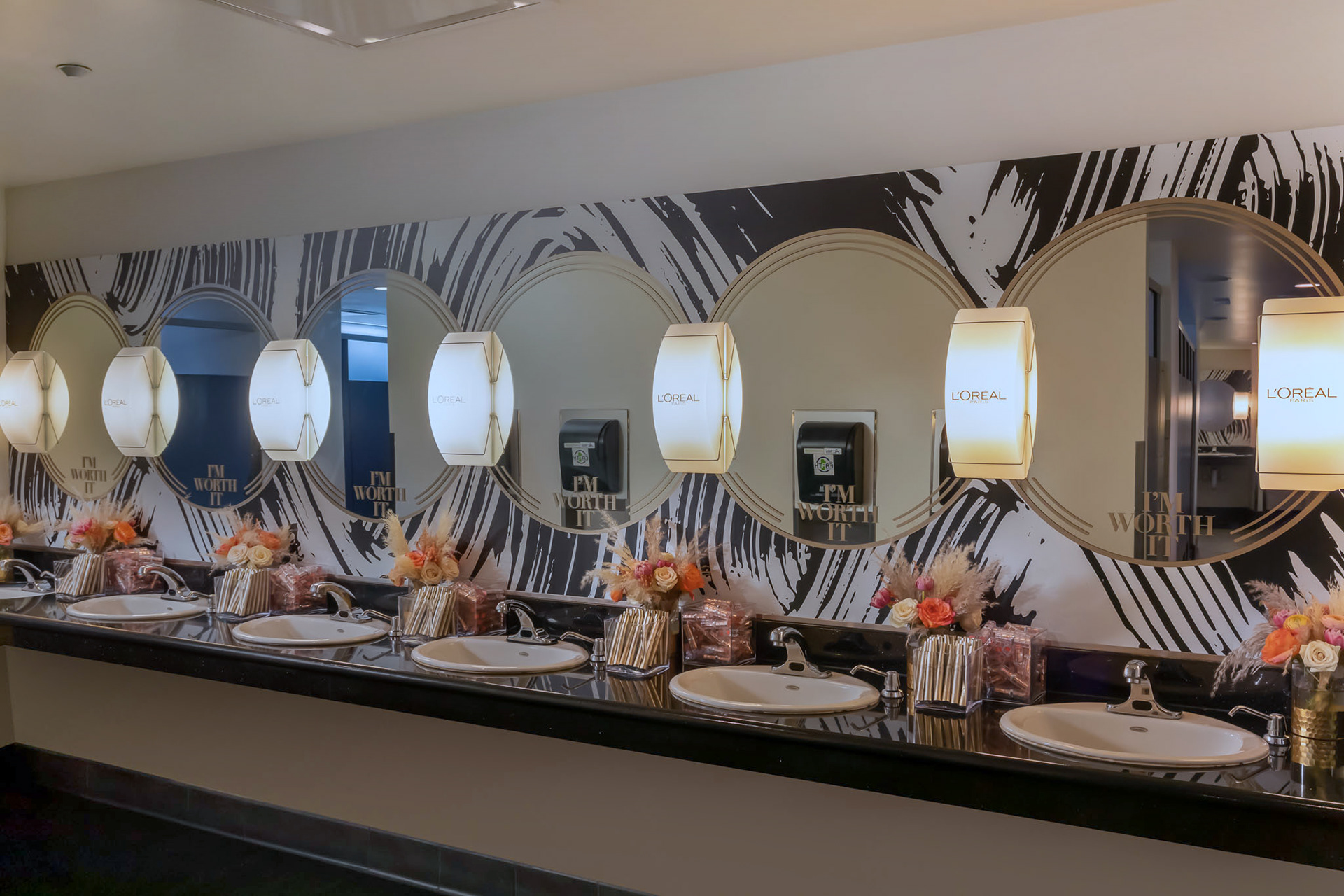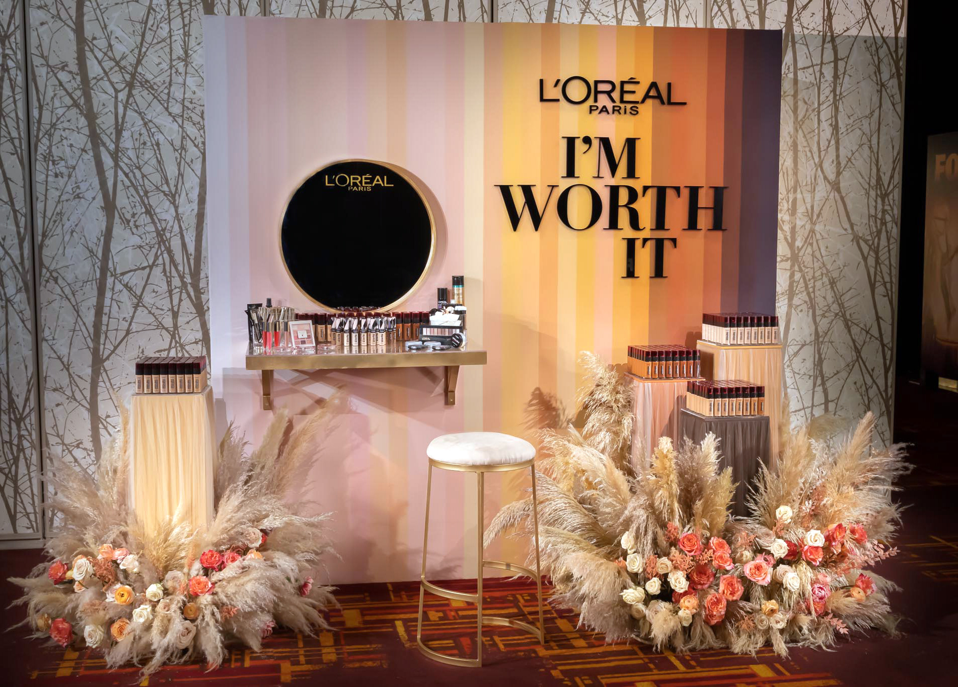 This brand activation for L'Oreal, is spread across 4 different events for the 71ST Primetime Emmys. Two custom touch-up stations were designed for the Governors Ball along with one for the Press Center, where guests received complimentary touch-ups and product. The design was inspired by their new 30 shade, light weight, sheer foundation. In addition, the Microsoft Theatre restrooms were transformed into a L'Oreal branded environment featuring mascara as the hero product. Brand Ambassadors were stationed at the counters throughout the telecast to engage with guests and provide free samples. A smaller activation was installed at the Performers Nominee Reception where guests received complimentary mascara. Responsible for concept, design and fabrication as well as lead Producer of all 4 events.